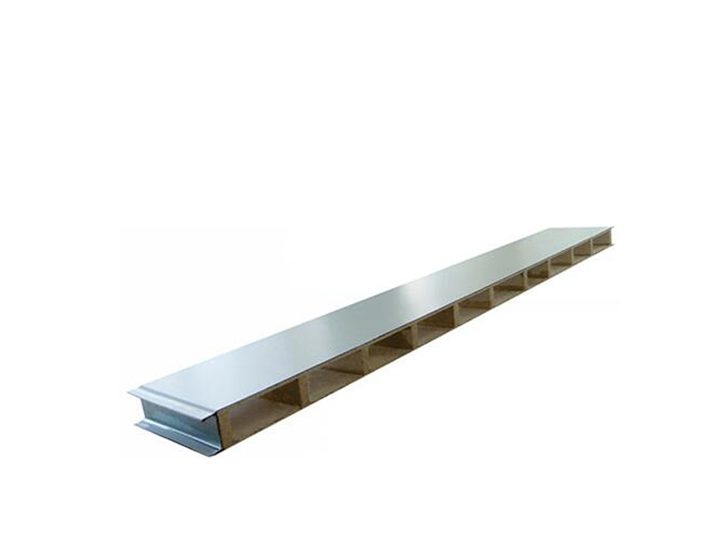 以彩色涂層鋼板為面材,以中空玻鎂為芯材,用熱固化膠在連續(xù)成型機內(nèi)加壓復合而成的輕質建筑板材。玻鎂板以氧化鎂,氯化鎂和水三元體系,經(jīng)配置和加改性劑而制成的,性能穩(wěn)定的鎂質膠凝材料,以中堿性玻纖網(wǎng)為增強材料,以輕質材料為填充物復合而成的新型不燃性裝飾材料。采用特殊生產(chǎn)工藝加工而成,具有防火、防水、無味、無毒、不凍、不腐、不裂、不變、不燃、高強質輕等特點。