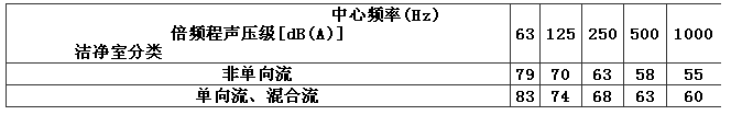 4.4.1 潔凈室內(nèi)的空態(tài)噪聲級,非單向流潔凈室不應(yīng)大于60dB(A),單向流、混合流潔凈室不應(yīng)大于65dB(A)。