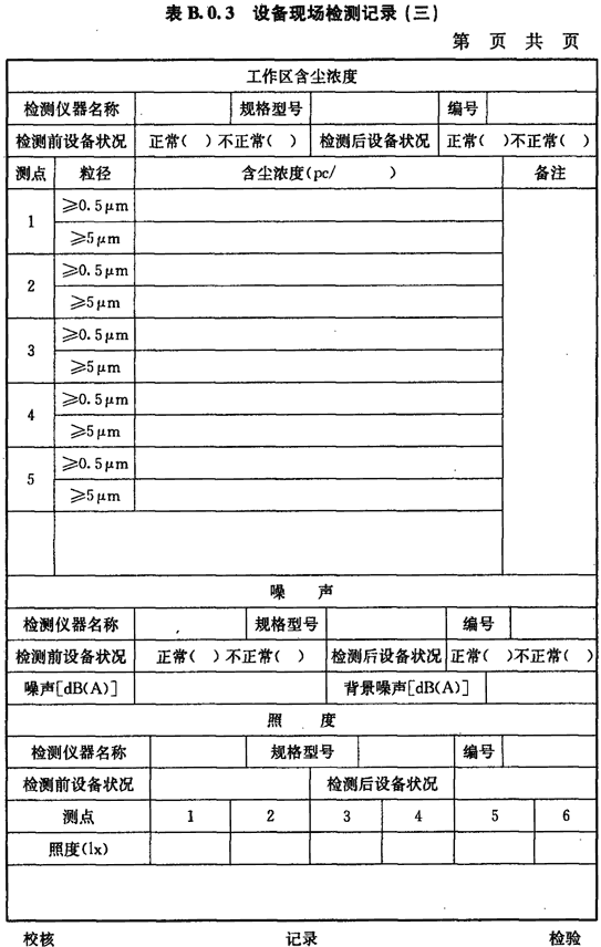 B.0.3 工作區(qū)含塵濃度、噪聲、照度的檢測應(yīng)按表B.0.3進行記錄。