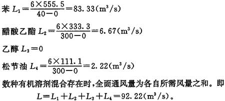 苯y(tǒng)p1=40mg/m3;醋酸乙酯yp2=300mg/m3;乙醇沒(méi)有規(guī)定,不計(jì)風(fēng)量;松節(jié)油yp4=300mg/m3。