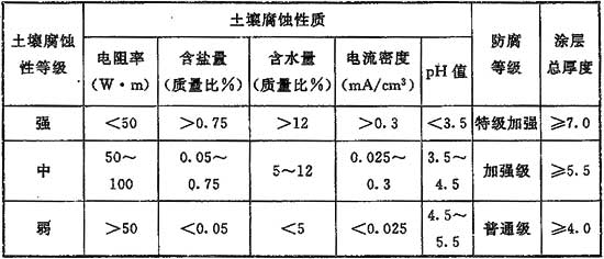 表13 土壤腐蝕性等級(jí)及防腐涂料等級(jí)